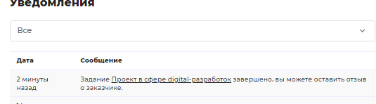 Заказчик получает соответствующее уведомление. Окончательно закрывает задание заказчик. Когда он принял и завершил проект, исполнителю приходит сообщение: «Задание завершено». Сделка считается закрытой. Исполнитель теперь может оставить отзыв о заказчике.