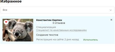 Также в папку «Избранное» можно добавить контакты пользователей, чьи предложения и резюме вы рассматриваете, но ещё не приняли окончательное решение о сотрудничестве.