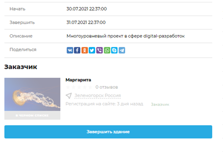 Когда специалист сделает свою работу, он кликает на «Завершить задание».
